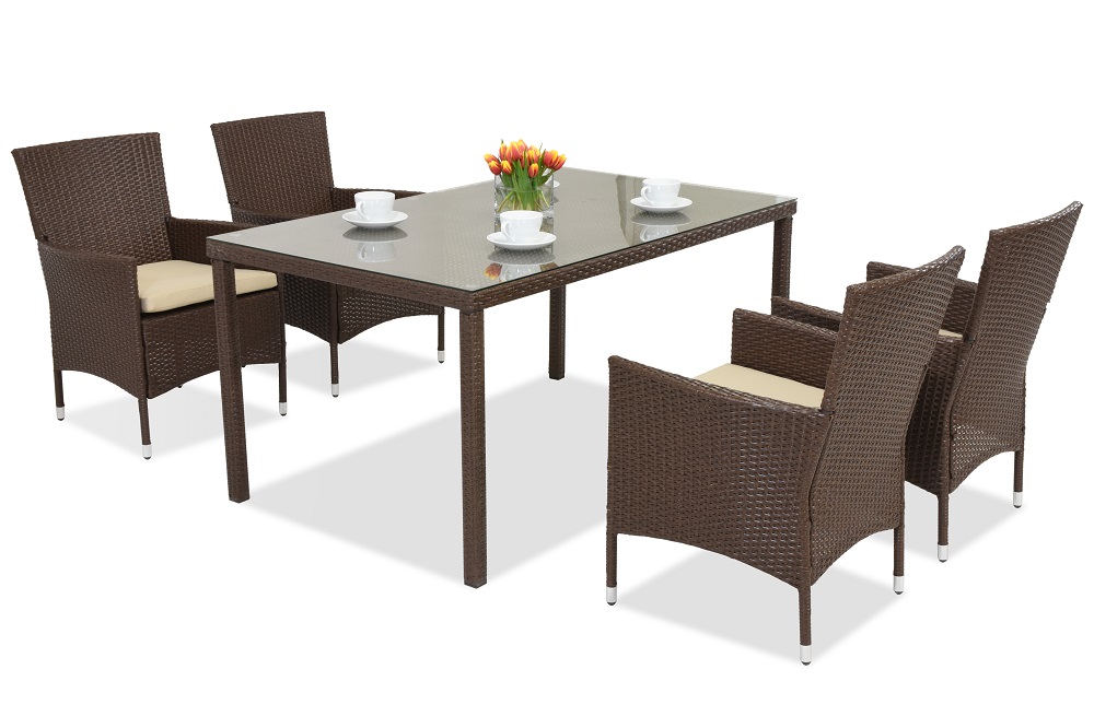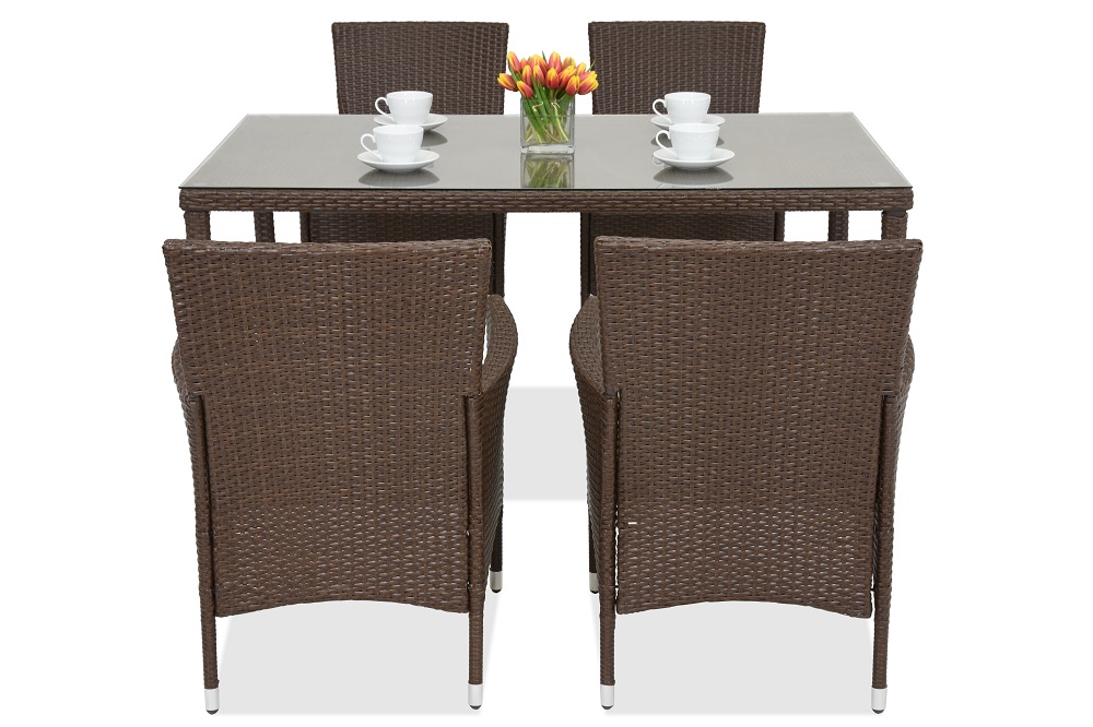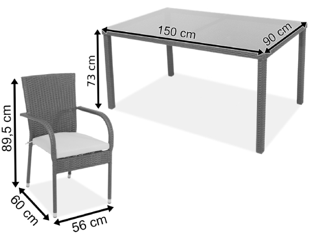 - Het oppervlak van de stoelen en de tafel zijn gemaakt van technorattan plaid.