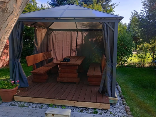 Hallo! Ik heb een vraag over dit paviljoen, moeten de polycarbonaat panelen verwijderd worden voor de winter en is het dak waterdicht als het regent? Alvast bedankt voor uw antwoordDe structuur is het hele jaar door - je hoeft er niets uit te halen voor de winter, behalve de gordijnen. Het dak is voor zover mogelijk 100% waterdicht.Pracownik GardenWay.nl 2024-01-09 13:40:08Automatisch vertaald (brontaal: pol)Bekijk bron