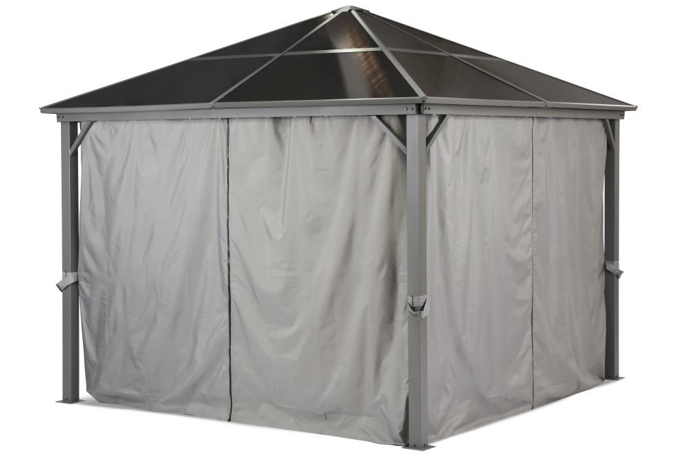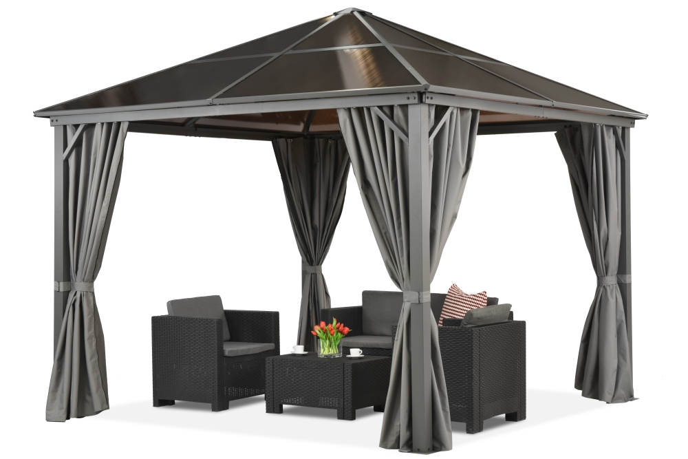Milos tuinhuisje 3x3m met Garden Point gordijnen grijs